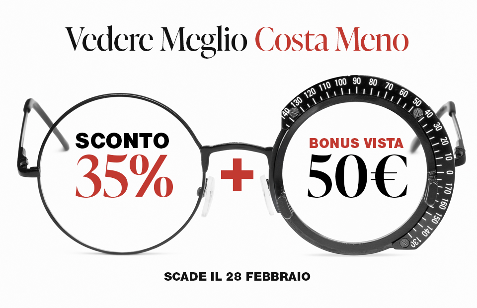 Vieni a trovarci in negozio e ottieni il 35% di sconto su montature e lenti da vista e da sole graduate